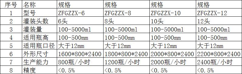 灌裝計量、灌裝調整方便簡單,用於灌裝100-5000ml瓶(包括異形瓶)。